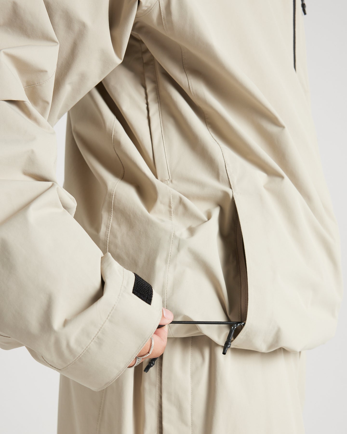 • In-Pocket adjustable hem with synch cord
