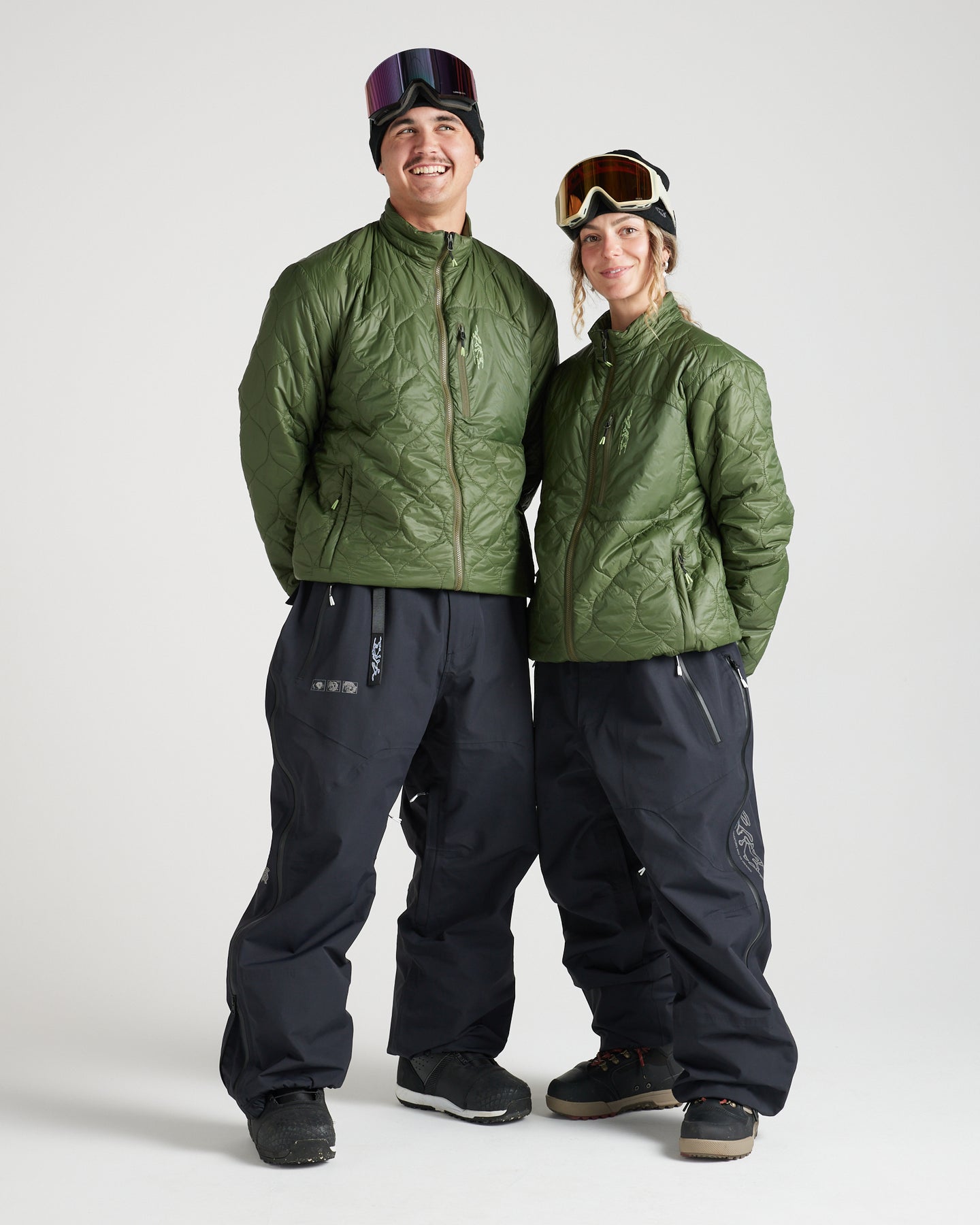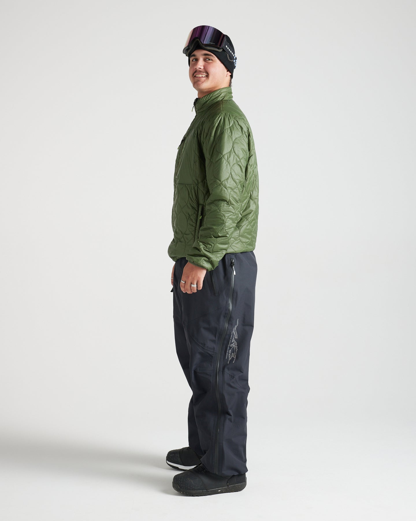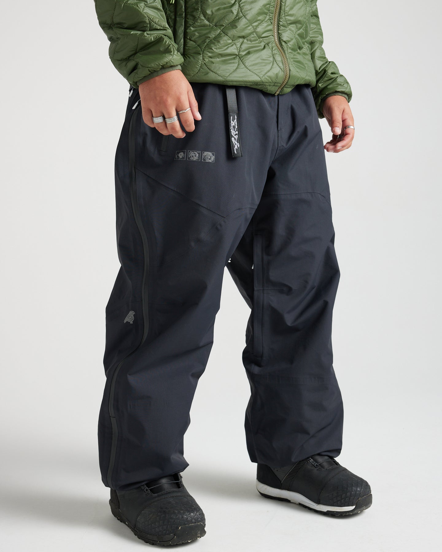 Say hello to the Slack Country pant, which can literally do it all for you. Want to tour and need max airflow so you don’t cook on the skin track, easy, we have a full zip down the leg so you can open it all the way up. Want a fit you're stoked on lapping the park or resort too? We got you. Get stoked on our baggy fit we’ve been rocking for seasons. Oh, and being a 20k/20k 3-layer shell, you don’t to worry about getting wet or it not holding up in any conditions. These are bullet proof.