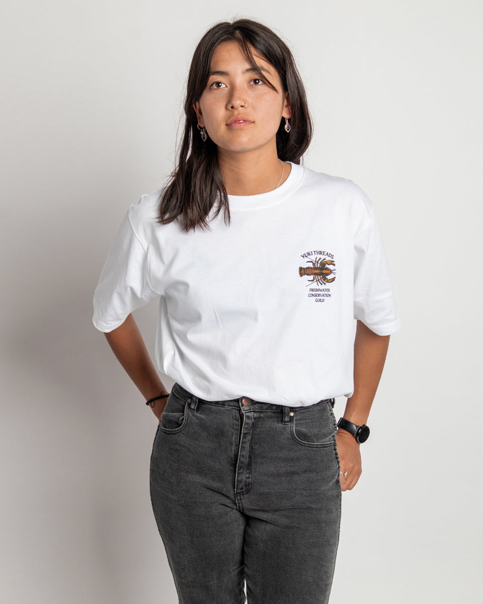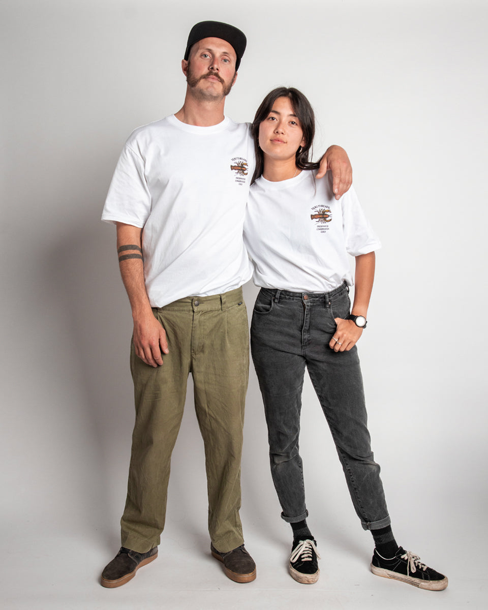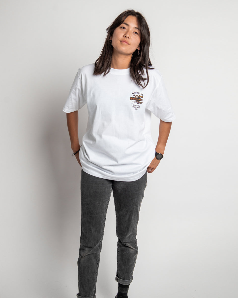 Our latest tee graphic is inspired by the spiny freshwater cray found in the river systems surrounding the Vic Alps (God's Country, well that's what we reckon). These little guys are slow growing and need healthy waterways to thrive, swimming in the same water that you might have been making a turn in through the winter months. Made from 100% organic cotton and printed in Melbourne, these tees help build awareness around the preservation of the environment we love to play in, plus they look rad af.