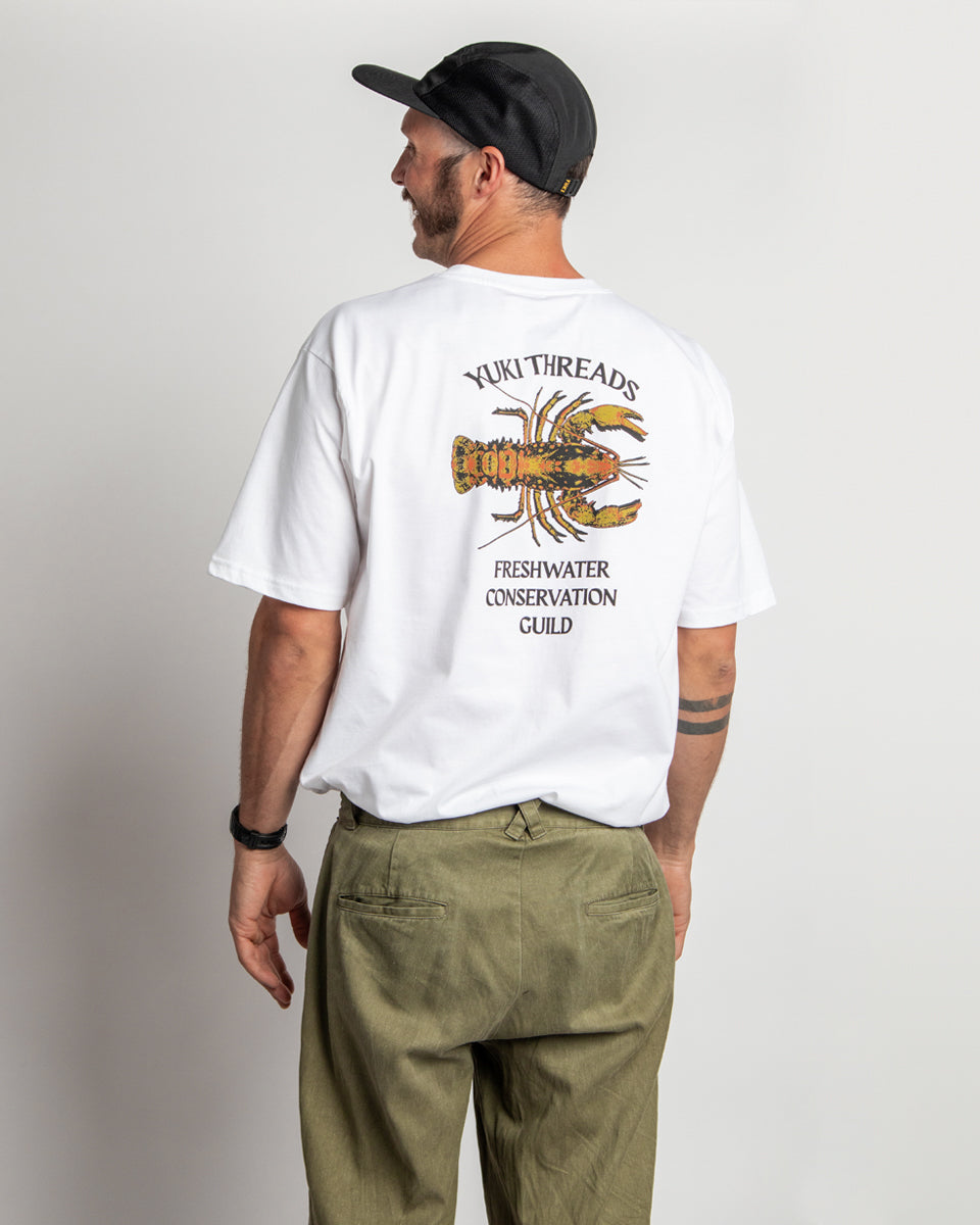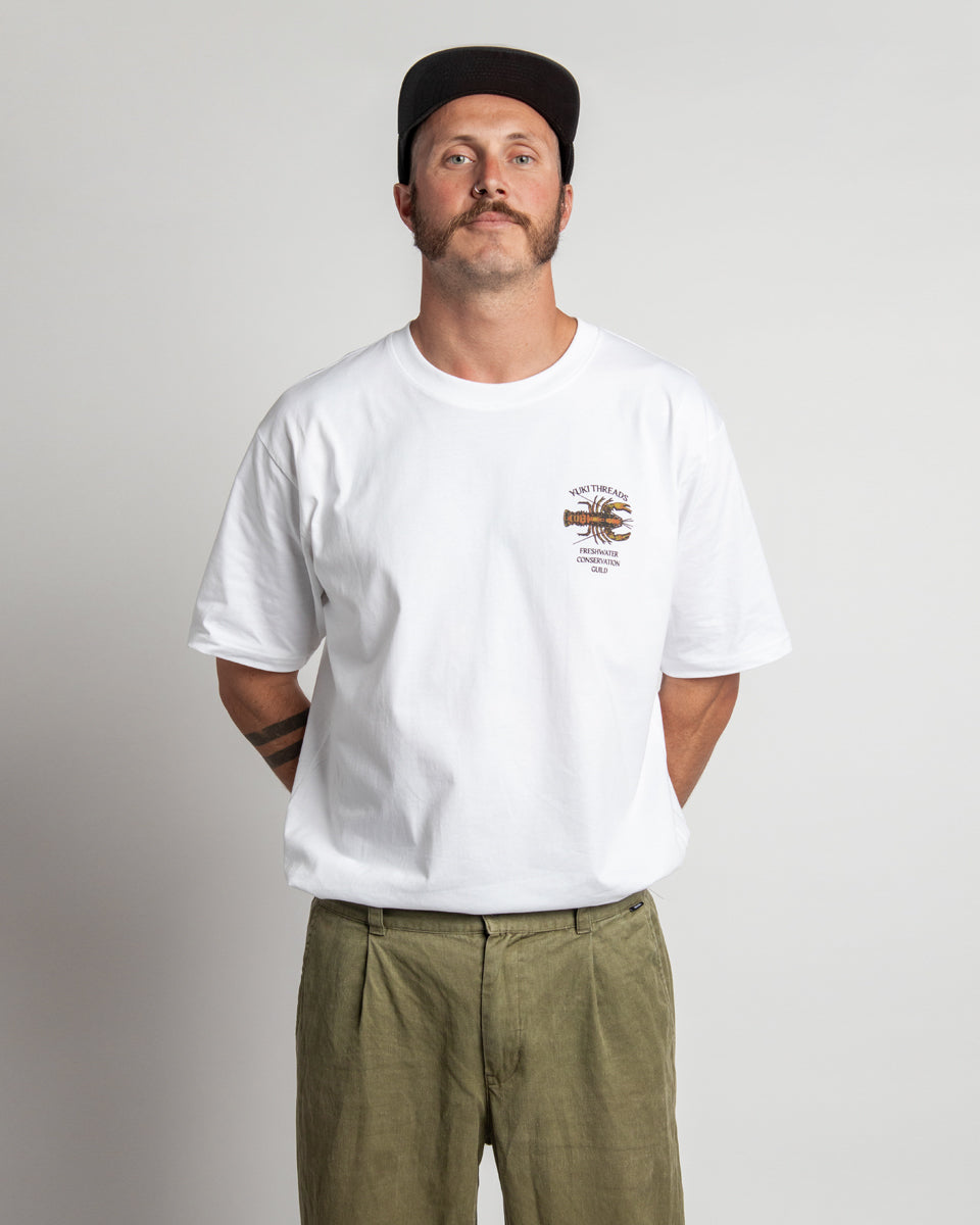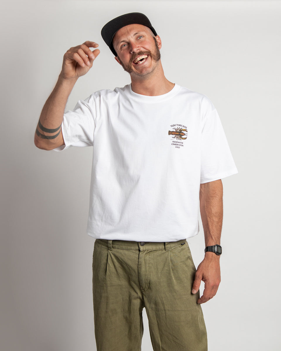 Our latest tee graphic is inspired by the spiny freshwater cray found in the river systems surrounding the Vic Alps (God's Country, well that's what we reckon). These little guys are slow growing and need healthy waterways to thrive, swimming in the same water that you might have been making a turn in through the winter months. Made from 100% organic cotton and printed in Melbourne, these tees help build awareness around the preservation of the environment we love to play in, plus they look rad af.