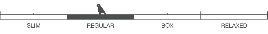 This fit's easy. A standard fitting garment. No extra room, not slim fitting.